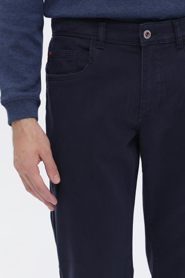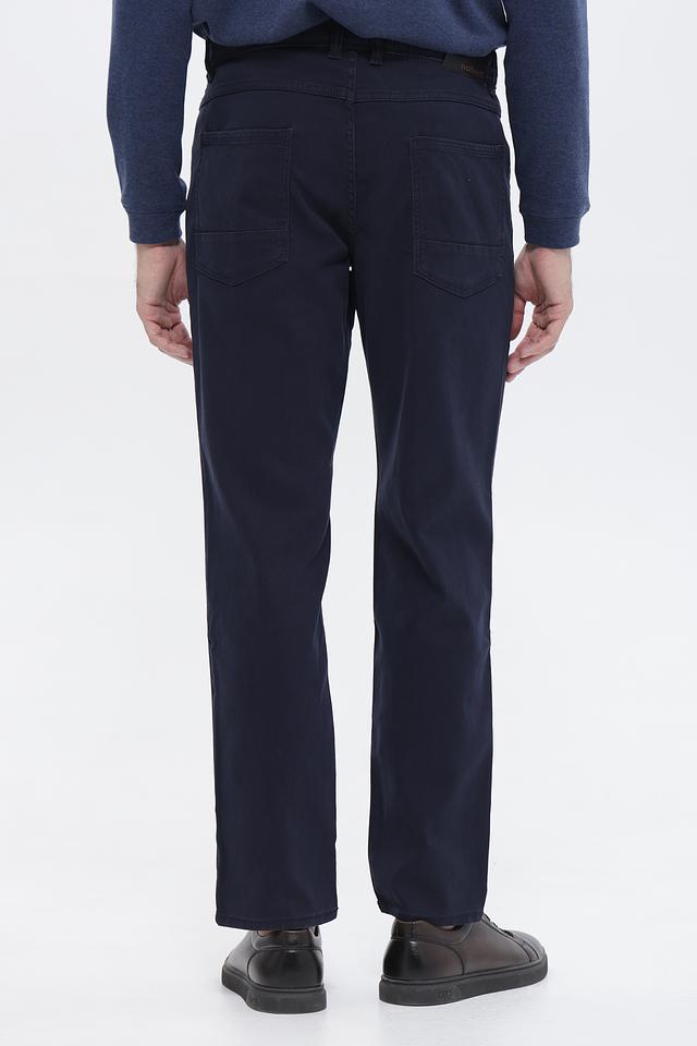 Тёмно-синий цвет делает их универсальным элементом гардероба, подходящим для создания различных образов – от делового до повседневного. Прямой крой брюк обеспечивает аккуратный силуэт, а стандартная посадка гарантирует удобство в носке.