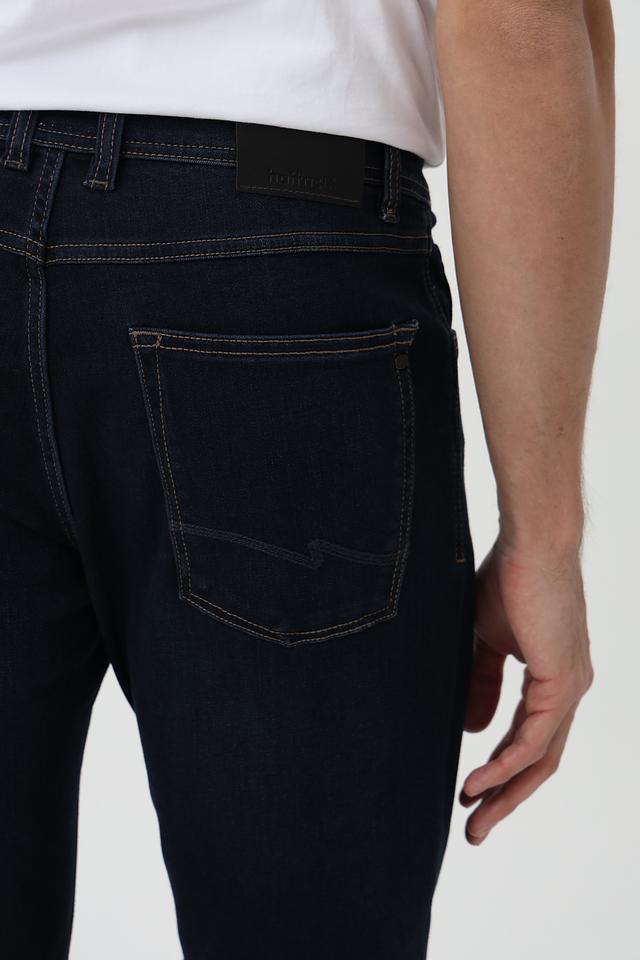 Классические мужские джинсы от бренда Hattric. Модель выполнена в насыщенном синем цвете и отличается оригинальной контрастной отделкой швов и карманов бежевым цветом.