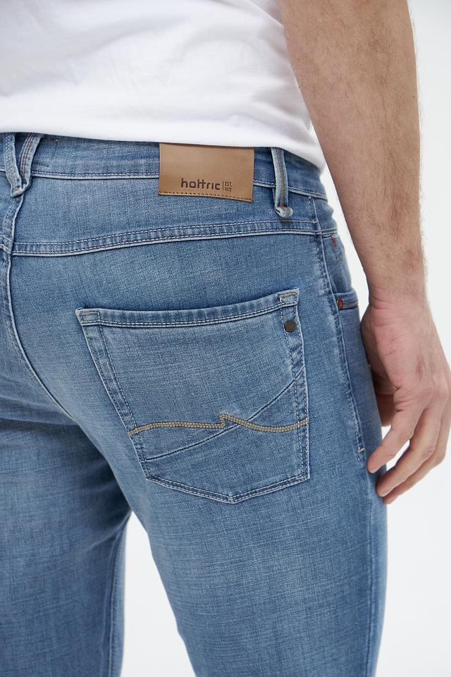 Мужские джинсы Hattric голубого цвета в стиле Slim Fit. Изготовлены из хлопка с добавлением полиэстера, вискозы и эластана для комфорта и износостойкости. Состав: хлопок 72%, полиэстер 25%, вискоза 2%, эластан 1%