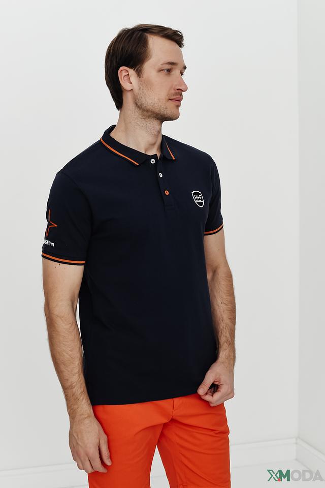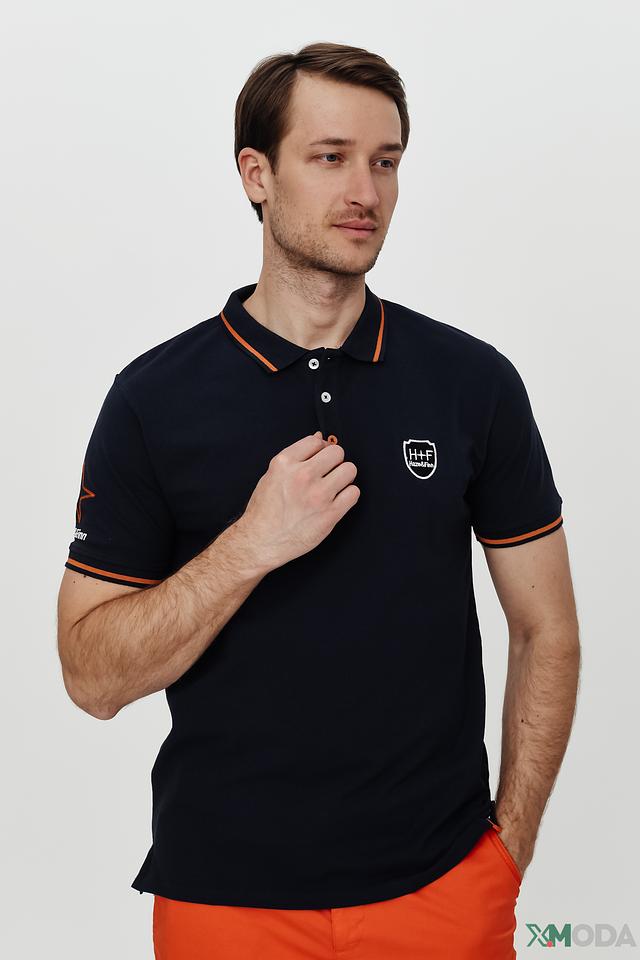 Мужское поло от Haze and Finn тёмно-синего цвета с оранжевой отделкой и логотипом на груди. Классический крой и 100% хлопковый состав обеспечивают комфорт и удобство в носке. Состав: хлопок 100%