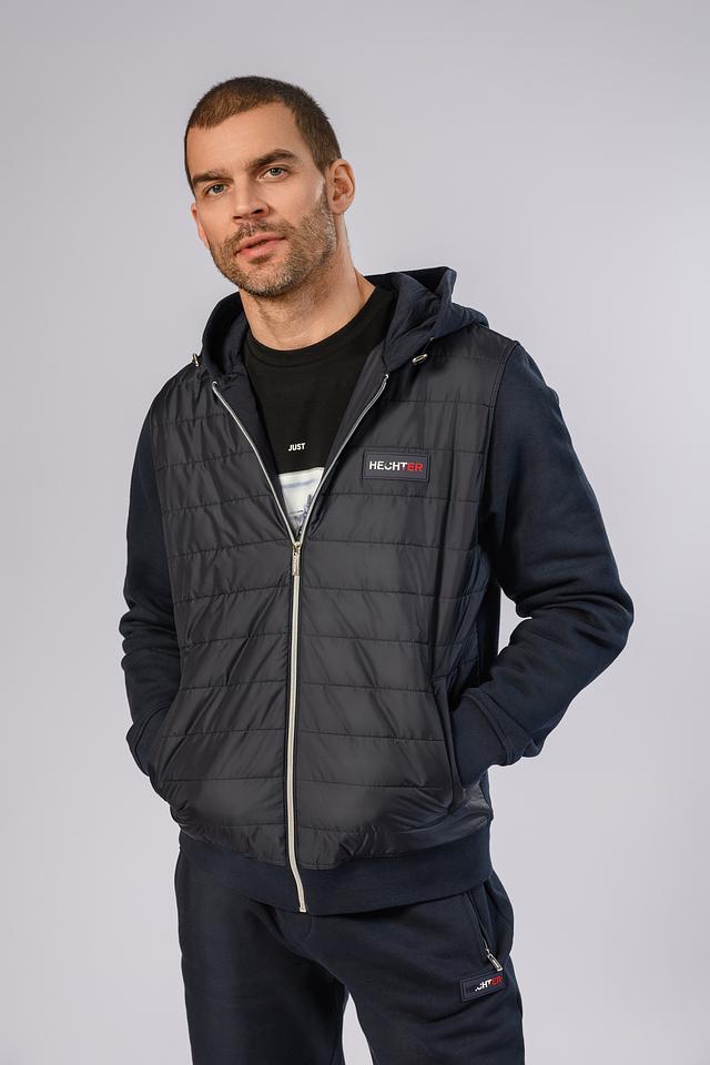 Стильный мужской кардиган Hechter синего цвета с комбинированным дизайном. Модель выполнена из хлопка с элементами стеганой ткани и дополнена удобным капюшоном и молнией. Состав: хлопок 100%