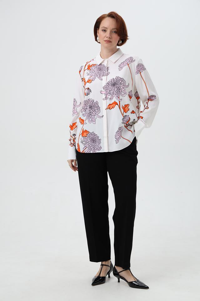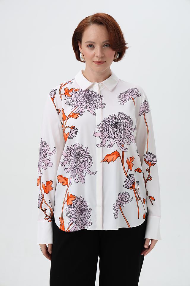 Классическая блузка Herzens Angelegenheit, выполненная в белом цвете с эффектным цветочным принтом. Модель имеет длинные рукава и лаконичный воротник, что делает ее универсальной для создания различных образов.