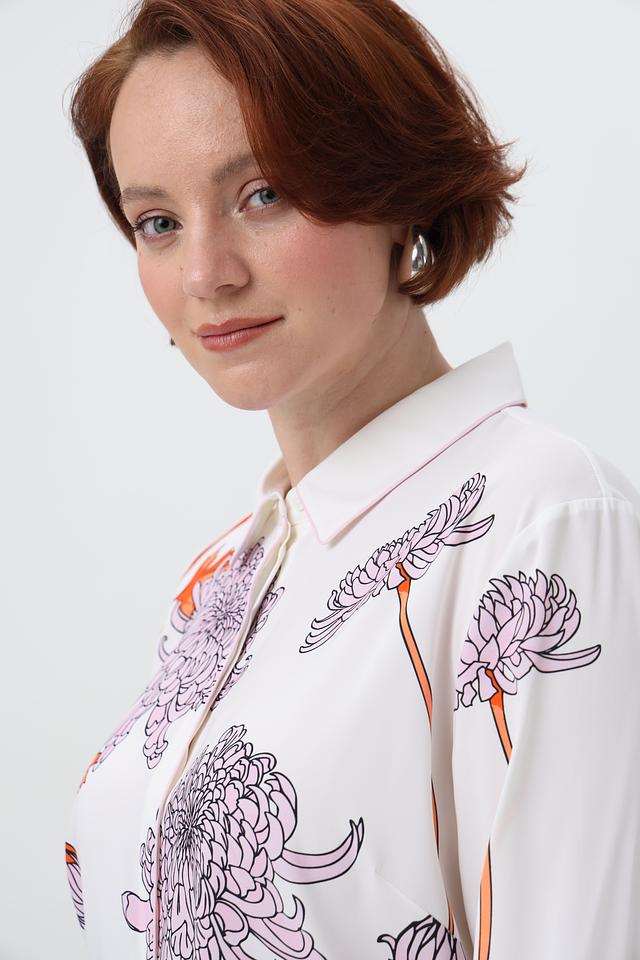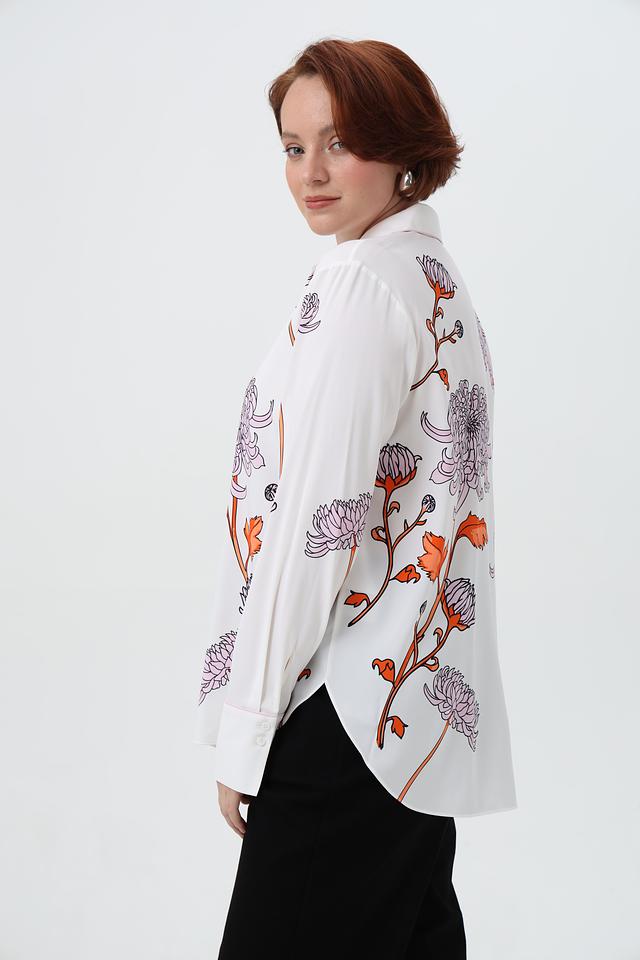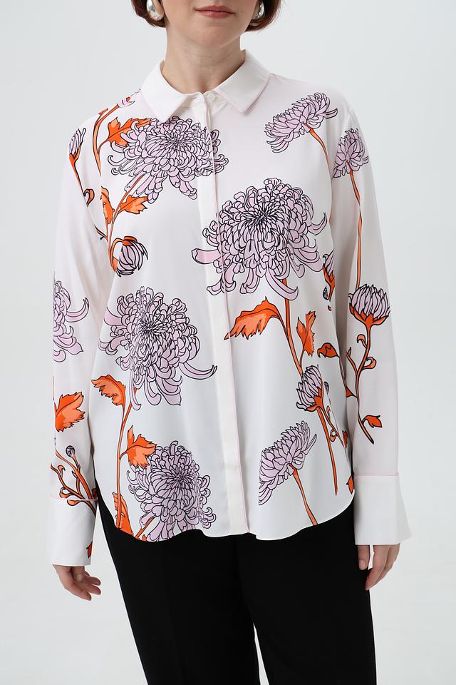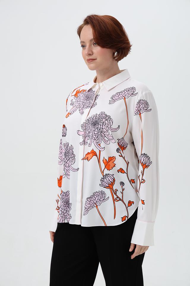 Белая блузка Herzens Angelegenheit с ярким цветочным принтом, выполненная из шелка с добавлением эластана. Модель с длинными рукавами и классическим воротником станет стильным дополнением к вашему гардеробу. Состав: шелк 95%, эластан 5%