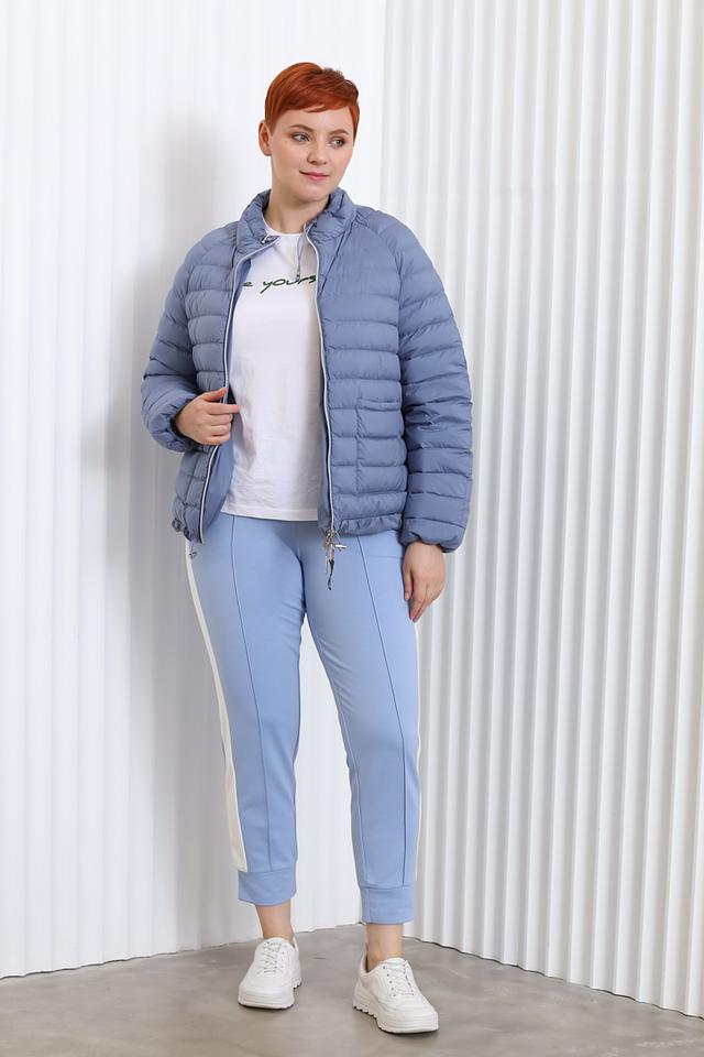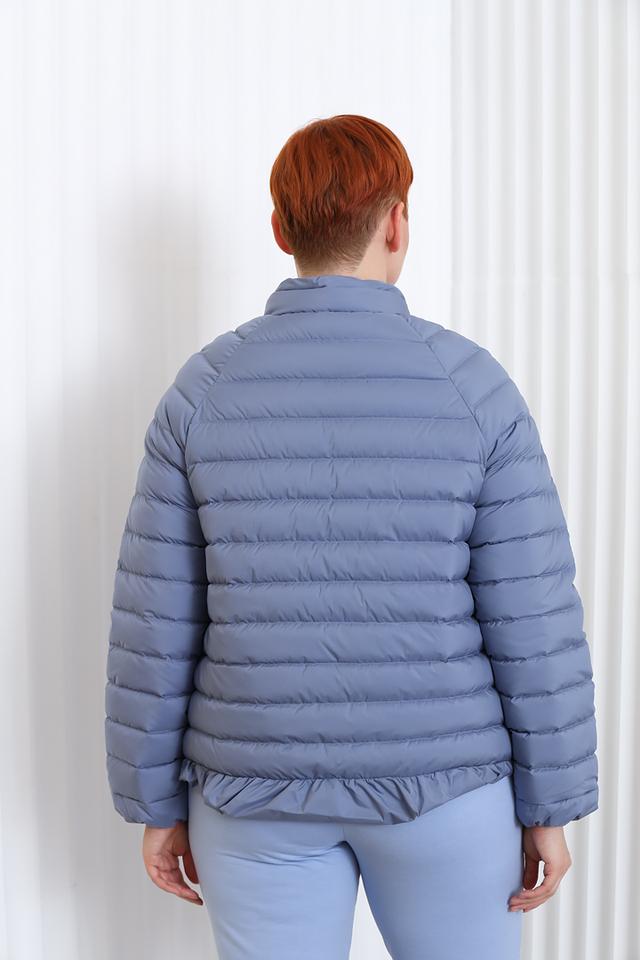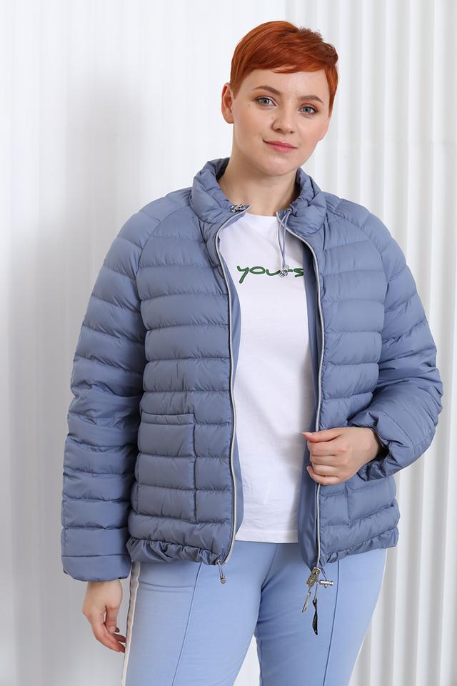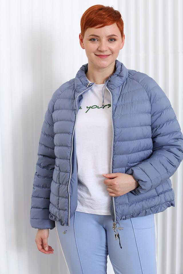 Куртка имеет прямой крой и длину до бедер, что делает ее универсальной для различных образов. Голубой цвет придает свежесть и легкость, а стеганая текстура добавляет оригинальности.