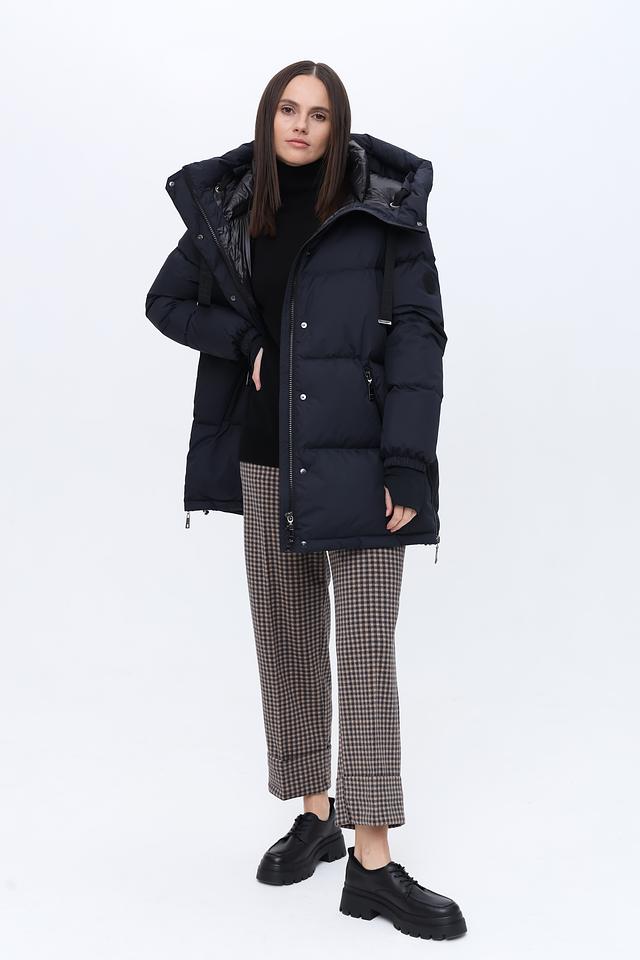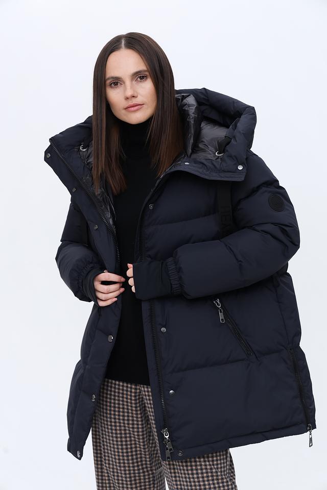 Модель оснащена удобными карманами на молнии, в которых можно безопасно хранить необходимые вещи. Рукава куртки имеют манжеты с эластичной лентой, которые плотно прилегают к запястьям, предотвращая попадание холодного воздуха внутрь. Прямой крой обеспечивает свободу движений и комфорт при носке.