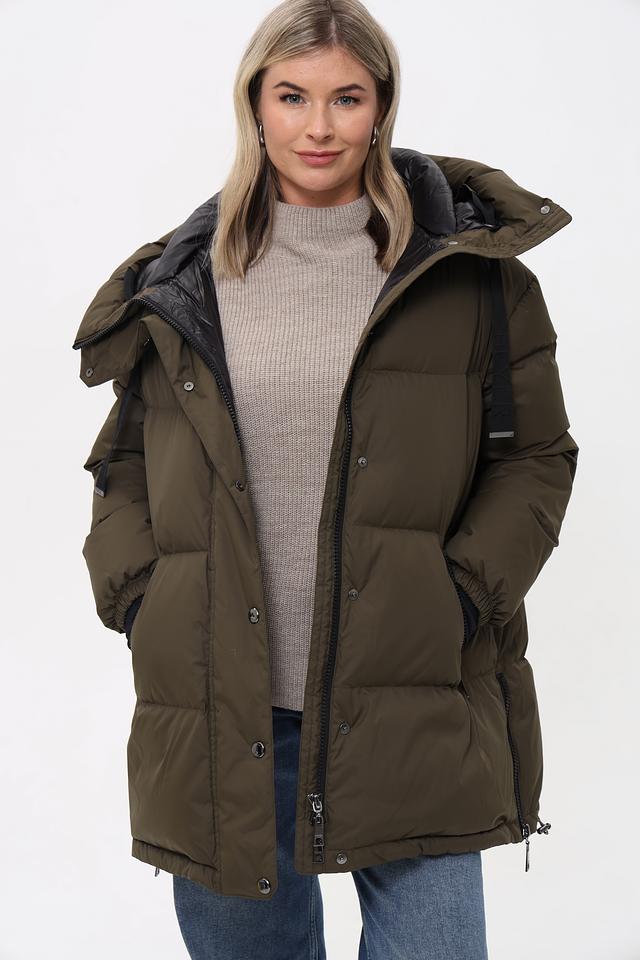 Женская куртка Heyer цвета хаки — это стильная и теплая модель оверсайз с капюшоном и черной подкладкой. Куртка выполнена из 100% полиэстера, обеспечивающего легкость и практичность в носке. Состав: полиэстер 100%