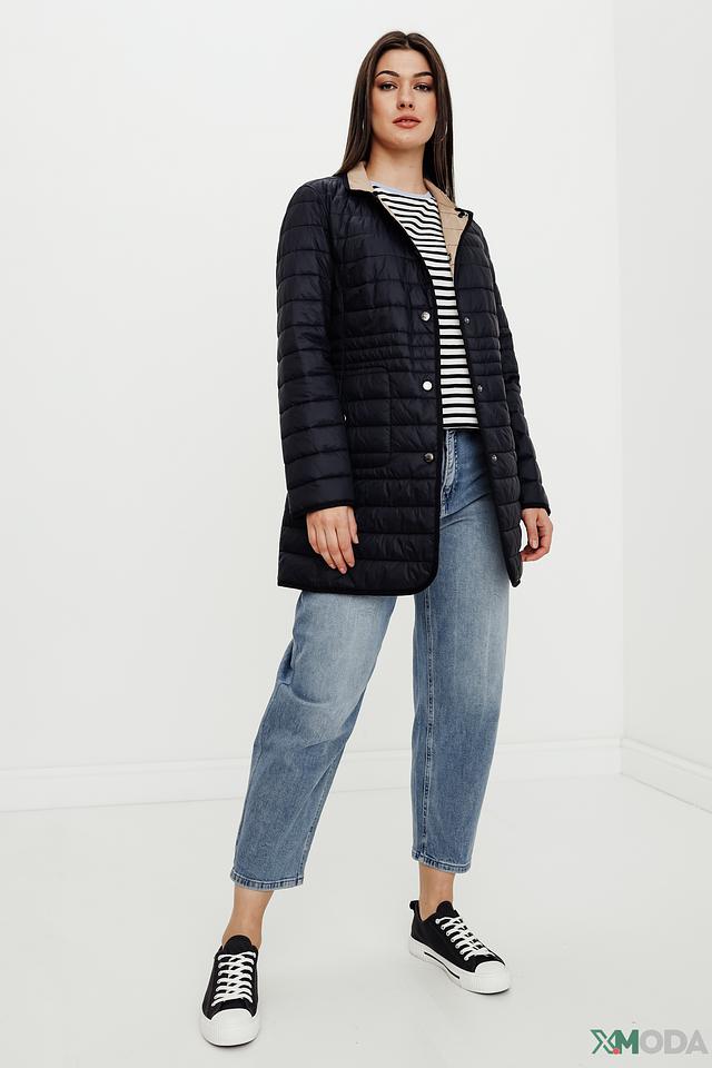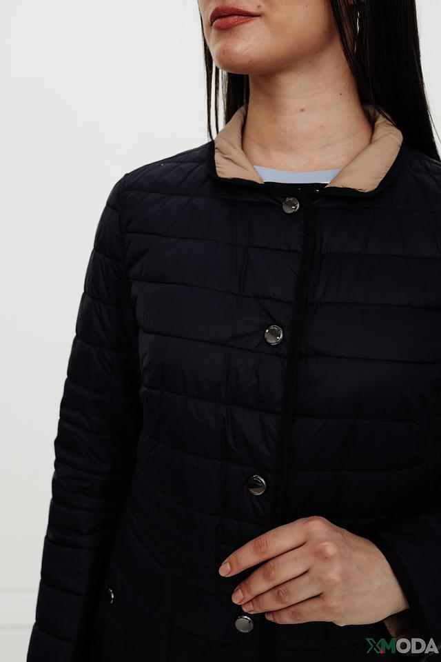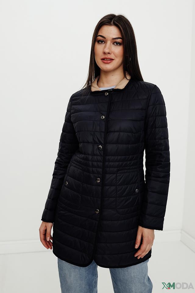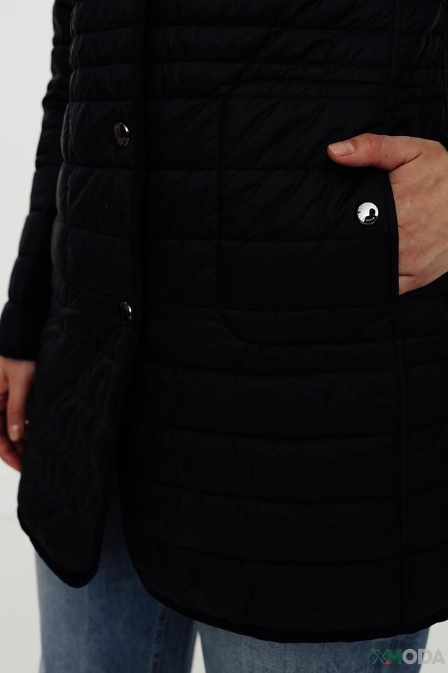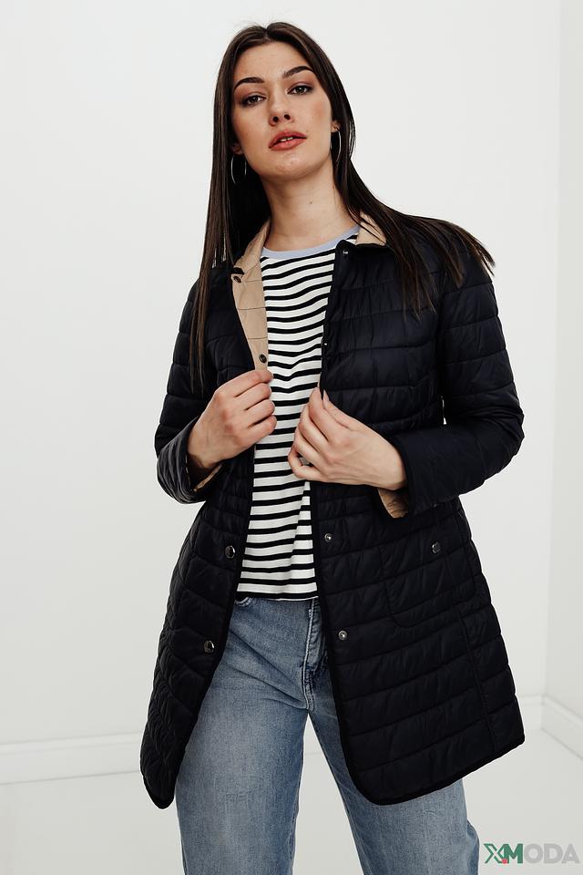 Данная модель выполнена в классическом чёрном цвете и имеет стеганую фактуру, которая придает ей особый шарм. Пальто застегивается на кнопки, что обеспечивает удобство и быстроту одевания. Воротник-стойка защищает от ветра и холода.