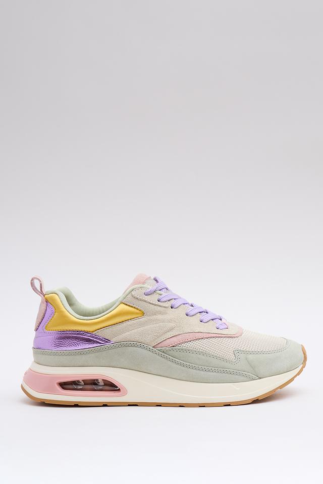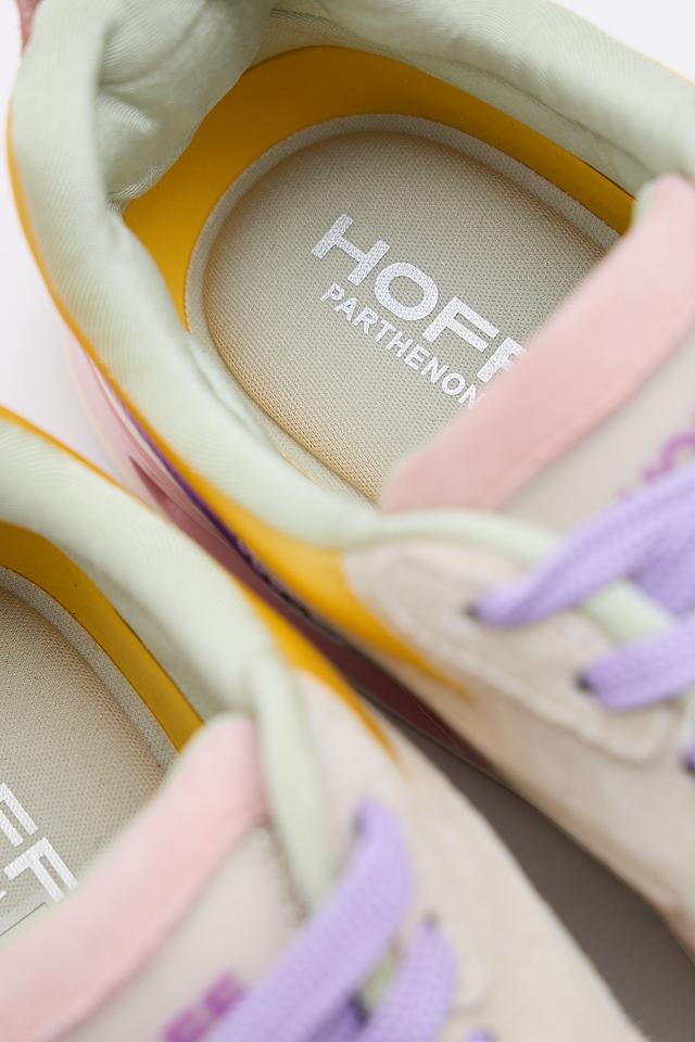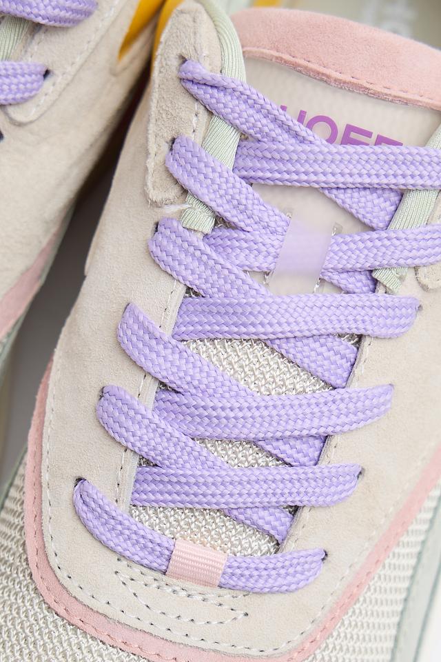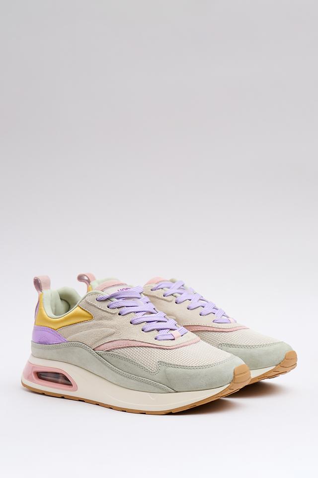 Кроссовки сочетают в себе несколько цветов: лавандовый, жёлтый, розовый и серый. Верх кроссовок выполнен из комбинации материалов: кожи и текстиля. Подошва выполнена из полиуретана и резины, что обеспечивает отличное сцепление с поверхностью и амортизацию.
