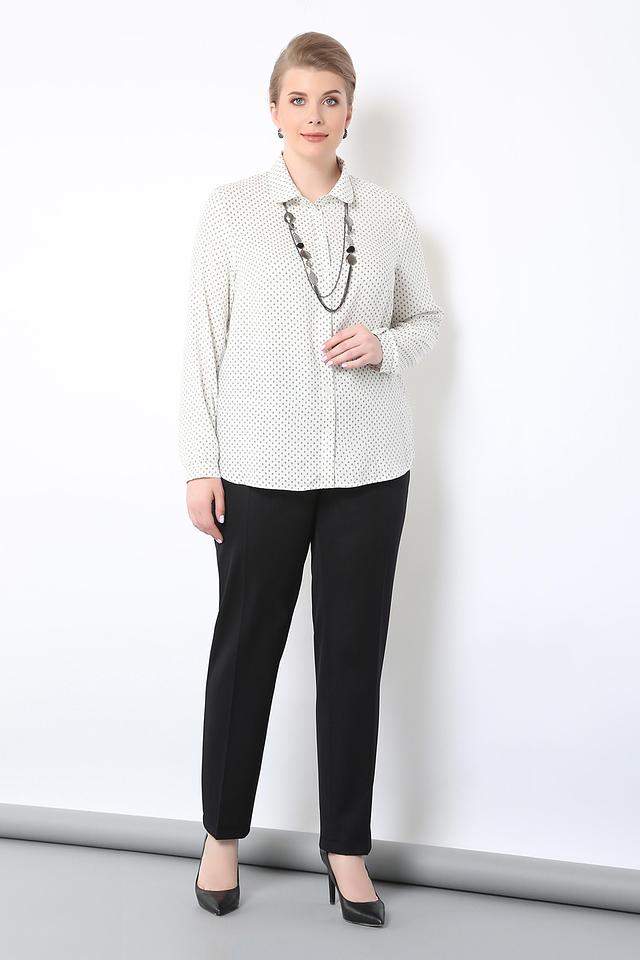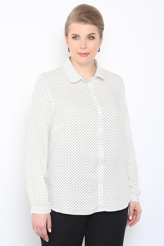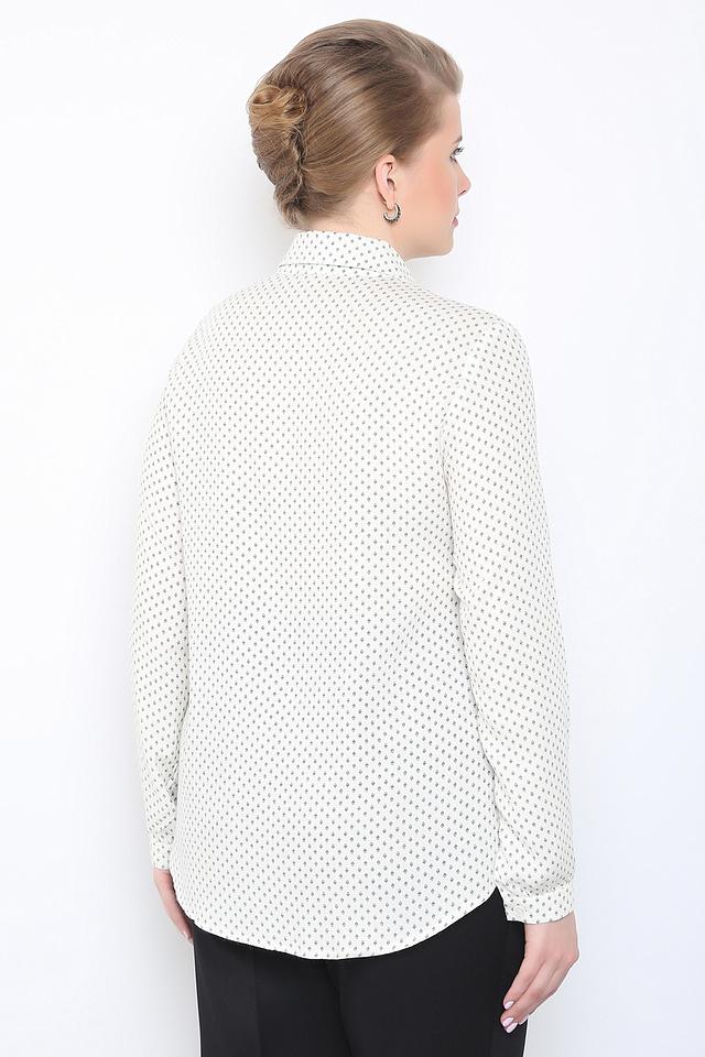 Блуза имеет классический крой с длинными рукавами и воротником-стойкой. Застежка осуществляется на пуговицы по всей длине. Изготовлена из качественной ткани, сочетающей в себе 65% вискозы и 35% хлопка, что обеспечивает комфорт в носке и приятные тактильные ощущения.