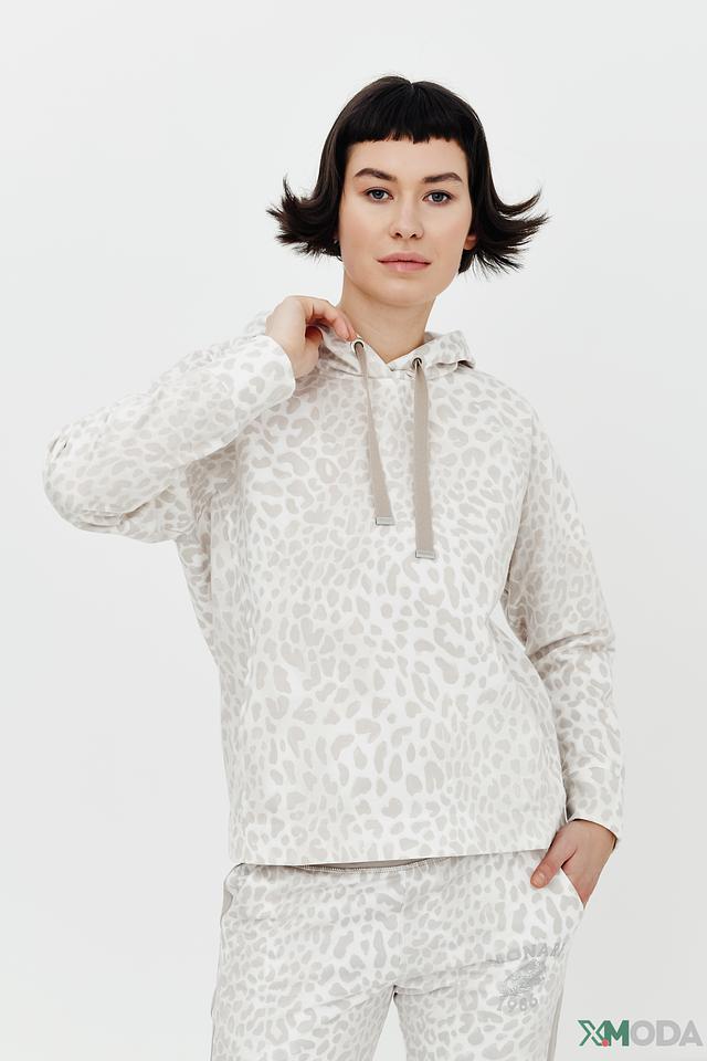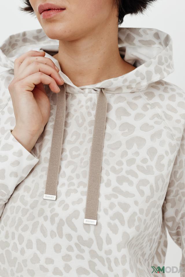 Женский пуловер Monari бежевого цвета с оригинальным леопардовым принтом станет стильным дополнением к вашему гардеробу. Удобный крой и капюшон делают его идеальным для повседневной носки. Состав: полиэстер 50%, хлопок 50%