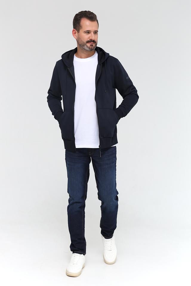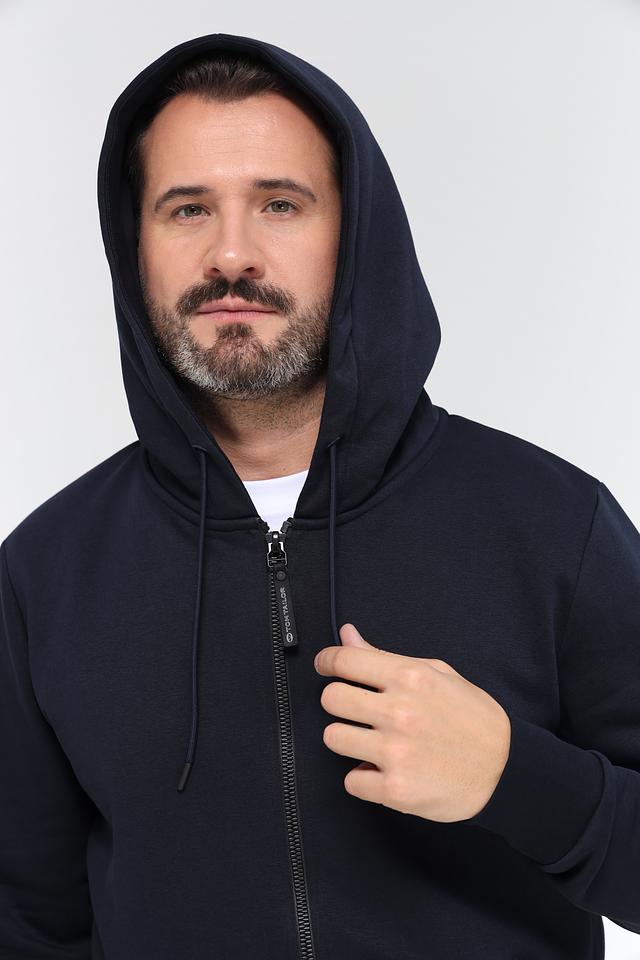 Мужской кардиган Tom Tailor тёмно-синего цвета – это удобная и стильная модель на молнии с капюшоном. Изготовлен из мягкого хлопка с добавлением полиэстера, обеспечивающего износостойкость. Идеально подходит для повседневной носки. Состав: хлопок 70%, полиэстер 30%