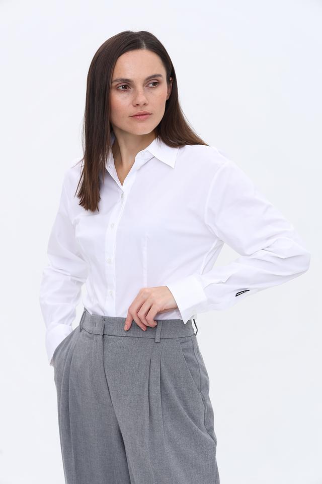 Состав: 97% хлопок, 3% эластан. Рубашка идеально подходит для работы, деловых встреч или повседневной носки. Она легко сочетается с брюками, юбками и джинсами, позволяя создавать стильные и элегантные комплекты.