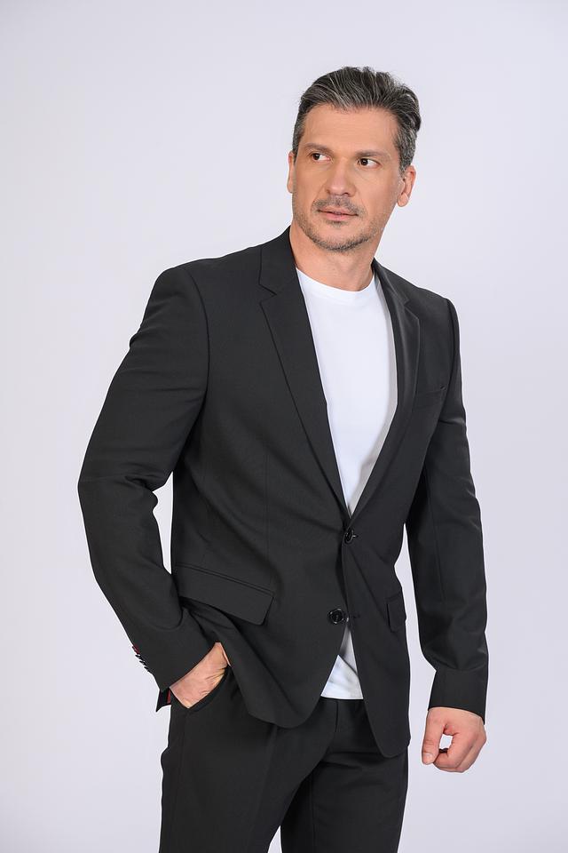 Представляем вашему вниманию классический мужской костюм от бренда Hugo. Этот элегантный костюм выполнен в строгом чёрном цвете, что делает его универсальным выбором для различных мероприятий и деловых встреч.