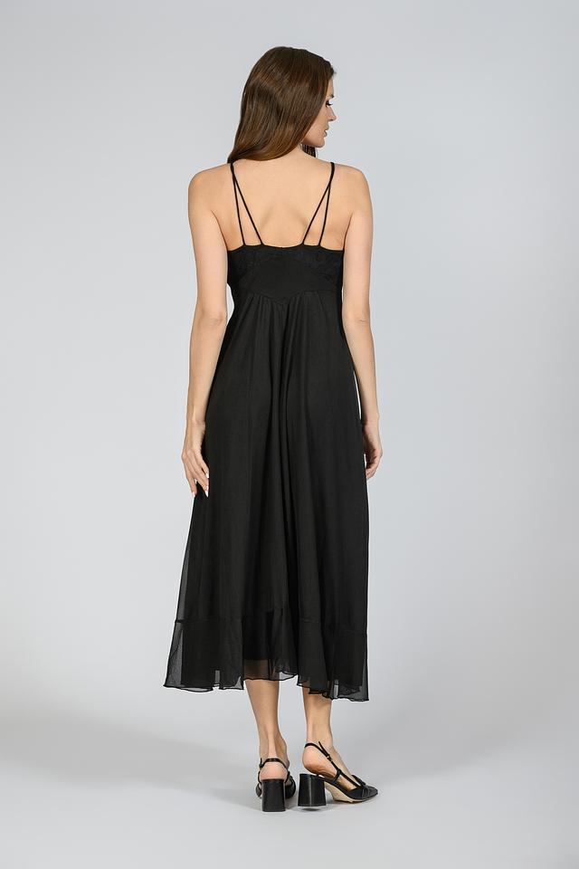 Состав платья: 95% полиэстер, 5% эластан. Благодаря этому сочетанию материалов платье хорошо держит форму, не мнется и легко ухаживается. Платье имеет тонкие бретели и V-образный вырез, что подчеркивает красоту шеи и декольте.