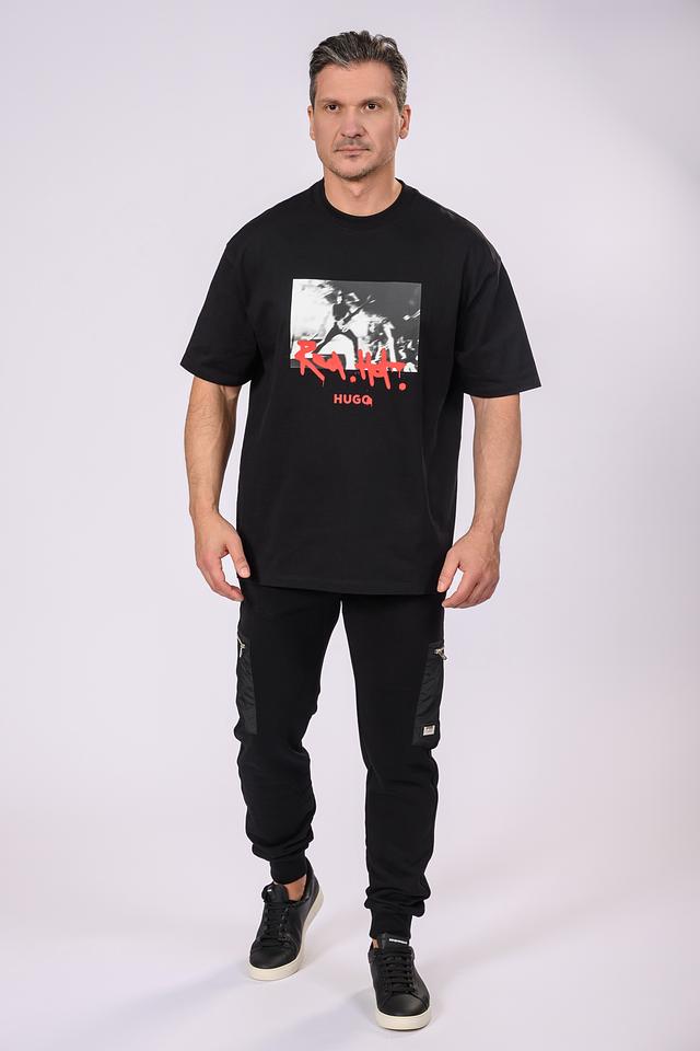 Чёрная футболка Hugo из 100% хлопка с эффектным графическим принтом. Прямой крой и короткий рукав обеспечивают комфорт и свободу движений. Стильный и лаконичный дизайн. Состав: хлопок 100%