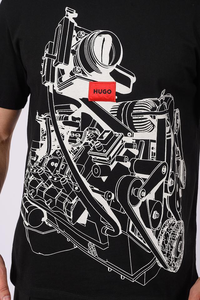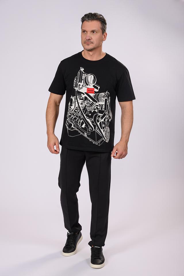 Чёрная футболка Hugo из 100% хлопка с эффектным графичным принтом. Классический крой и лаконичный дизайн делают эту футболку универсальным элементом гардероба. Состав: хлопок 100%