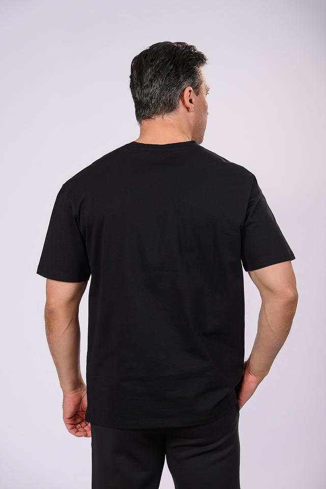 Основной цвет футболки – чёрный, который служит идеальным фоном для яркого и детализированного белого принта. Принт выполнен в виде сложной графической композиции, придающей изделию современный и динамичный вид.