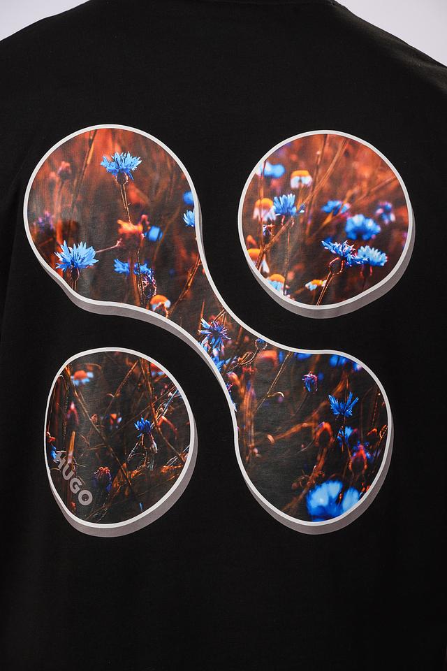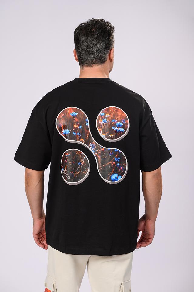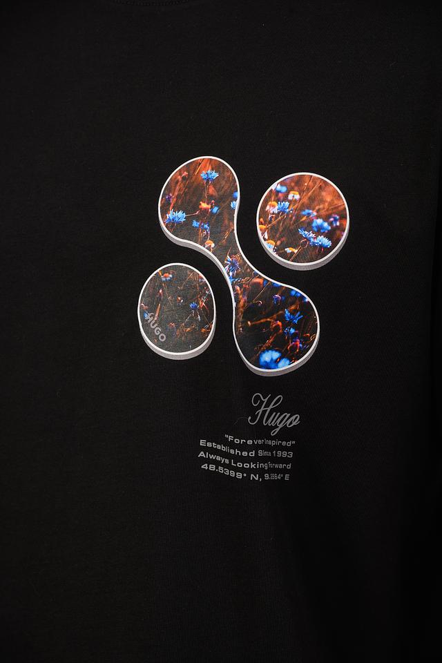 Чёрная футболка Hugo из 100% хлопка с оригинальным графическим принтом на груди и спине. Стильный и комфортный выбор для повседневного образа. Состав: хлопок 100%