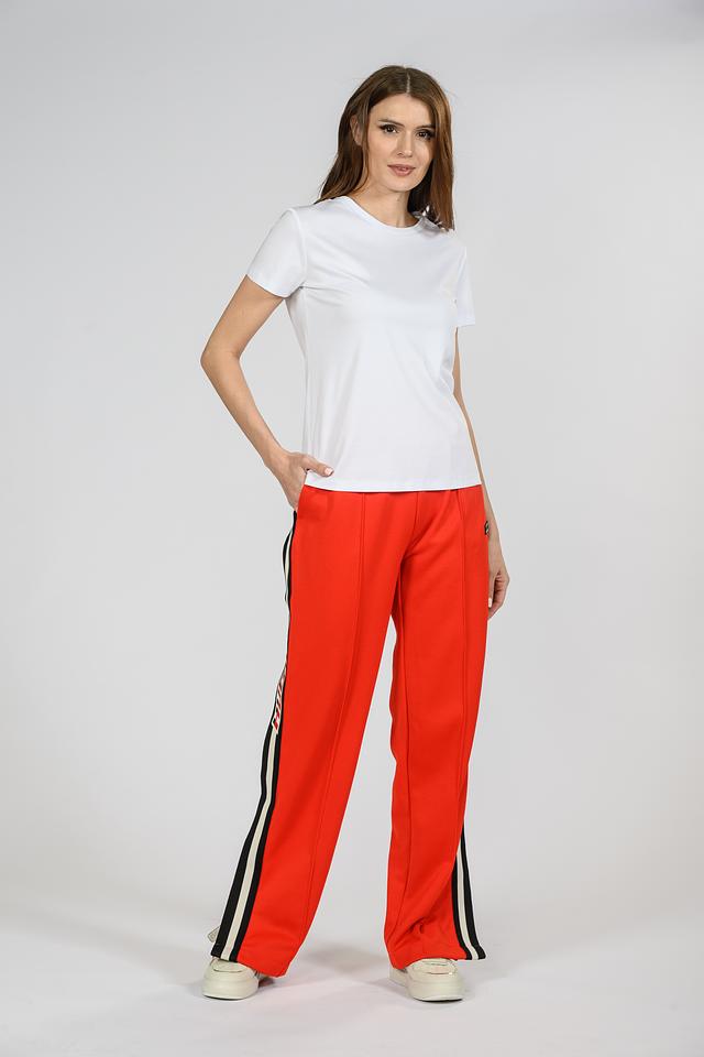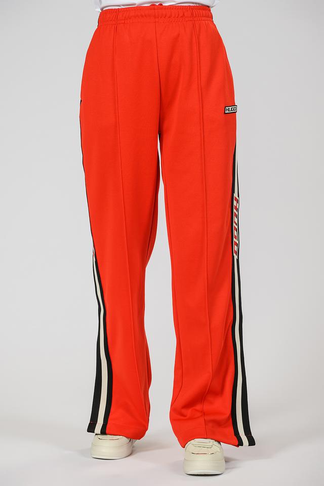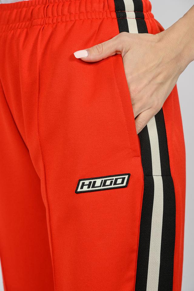 Женские спортивные брюки Hugo оранжевого цвета с контрастными полосками. Изготовлены из полиэстера и хлопка, обеспечивающих комфорт и удобство при носке. Состав: полиэстер 70%, хлопок 30%