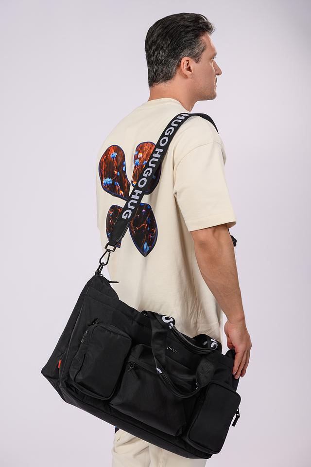 Чёрная мужская сумка Hugo выполнена из прочного полиамида и оснащена удобными ручками и плечевым ремнём. Стильный дизайн и функциональность делают эту сумку идеальным выбором для повседневного использования и путешествий. Состав: полиамид 100%