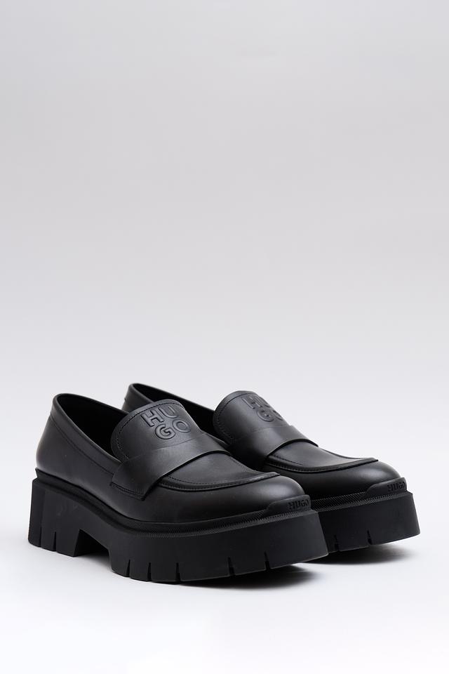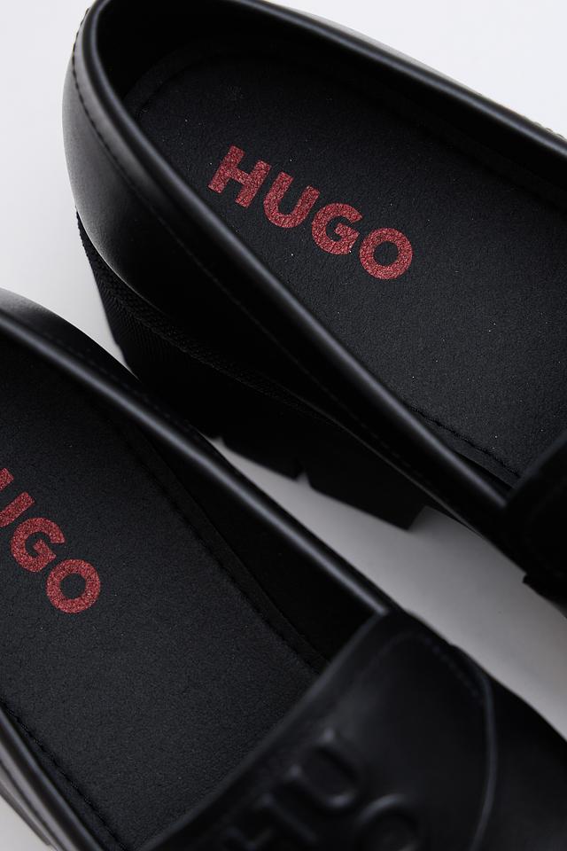 Верх лоферов изготовлен из высококачественной натуральной кожи, что обеспечивает комфорт и долговечность. Массивная подошва добавляет обуви современный акцент и обеспечивает устойчивость при ходьбе. Логотип Hugo, расположенный на верхней части лоферов, подчеркивает принадлежность к бренду и добавляет узнаваемости.