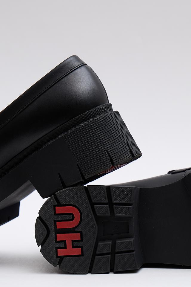 Чёрные лоферы Hugo из натуральной кожи — элегантная и современная обувь на массивной подошве. Модель отличается лаконичным дизайном и фирменным логотипом бренда, что делает её отличным выбором для создания стильных образов. Состав: кожа 100%