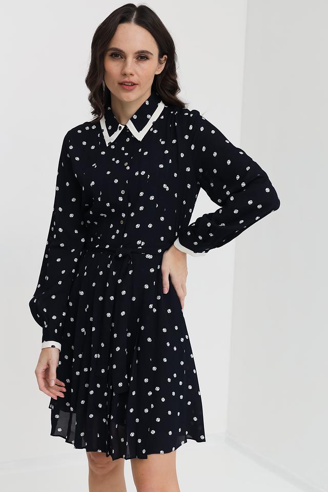 Чёрное платье от i Blues с белым горошком – стильное и элегантное решение для создания женственного образа. Платье с длинными рукавами и поясом подчеркнет талию и создаст аккуетный силуэт. Состав: вискоза 100%