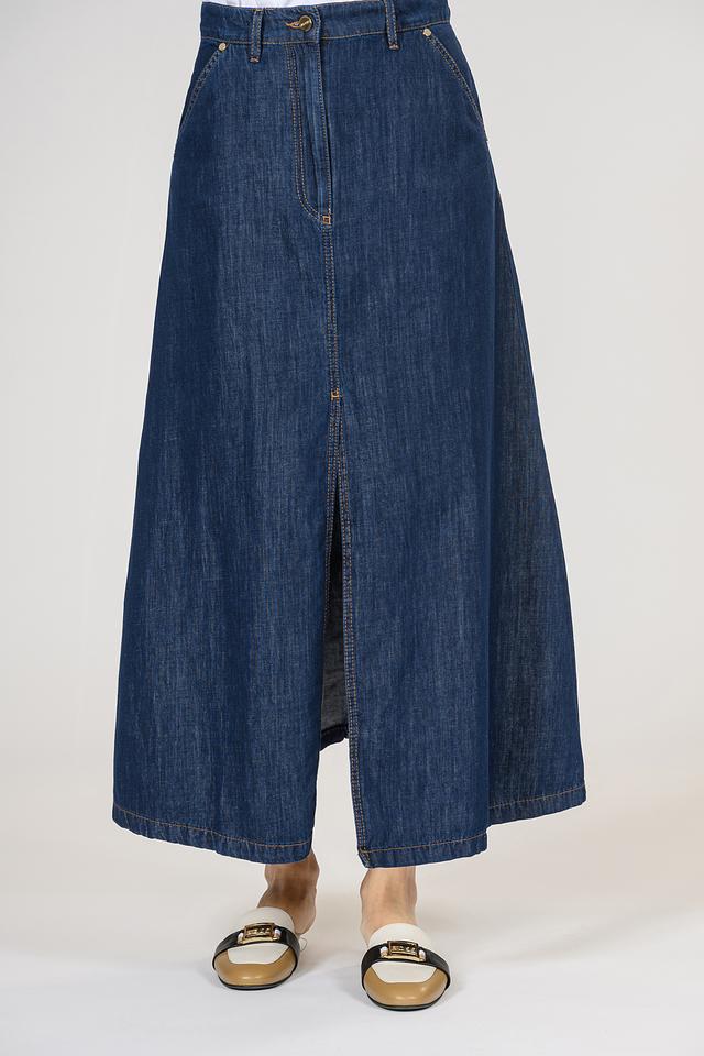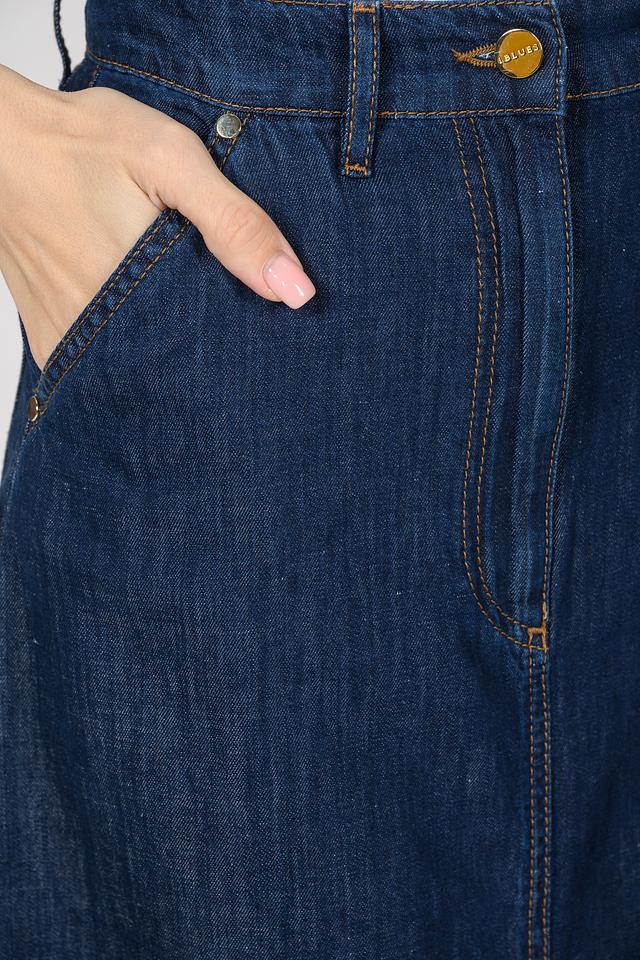 Синяя джинсовая юбка i Blues длиной миди с асимметричным разрезом. Модель выполнена из плотного денима и имеет удобный пояс с пуговицами. Идеальный выбор для создания стильного и комфортного образа. Состав: хлопок 67%, луоселл 17%, лен 16%