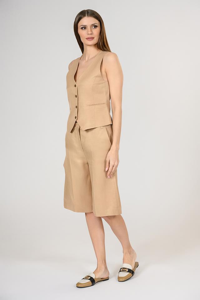 Бежевый жилет от i Blues – стильный элемент женского гардероба. Модель выполнена из льна с вискозой, имеет V-образный вырез и застегивается на пуговицы. Состав: Состав_подкладка ацетат 60%, лен 59%, вискоза 41%, Состав_подкладка вискоза 40%