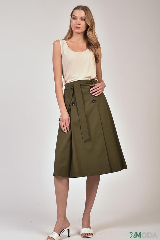 Юбка i Blues оливкового цвета – это стильная модель с поясом и плиссированной юбкой. Изготовлена из хлопка с добавлением эластана, обеспечивающего комфорт и свободу движений. Идеальный выбор для создания элегантного образа. Состав: хлопок 98%, эластан 2%