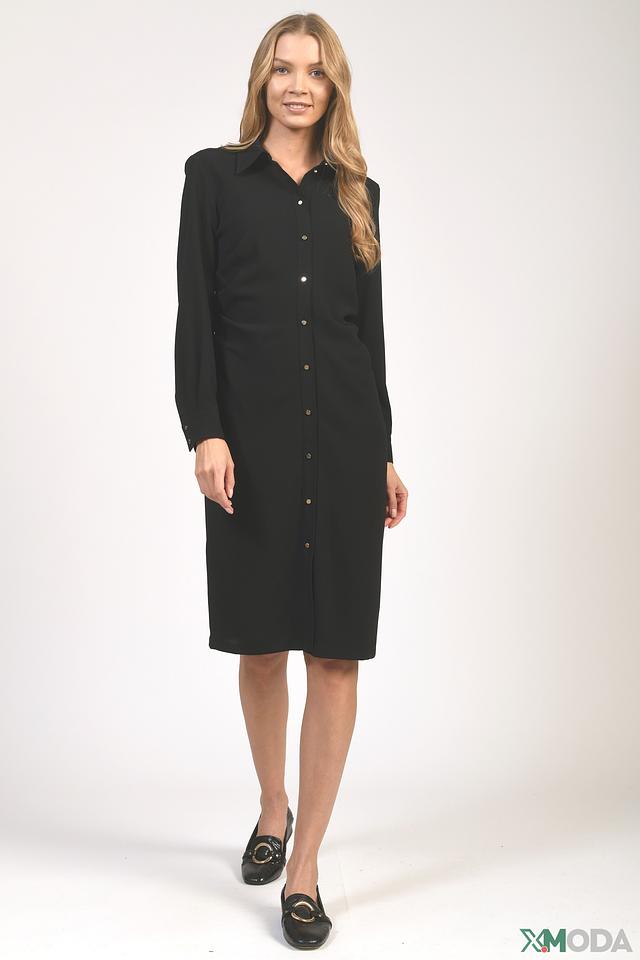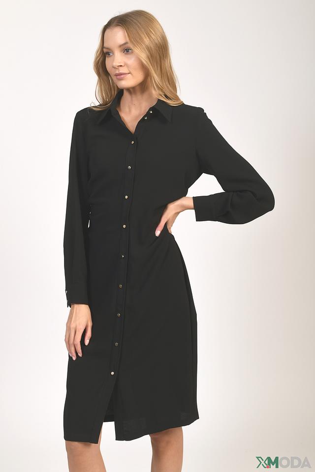 Это элегантное платье от бренда i Blues выполнено в классическом чёрном цвете и станет отличным дополнением к вашему гардеробу. Платье имеет рубашечный крой с воротником и застёжкой на пуговицы по всей длине.