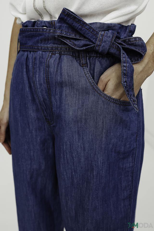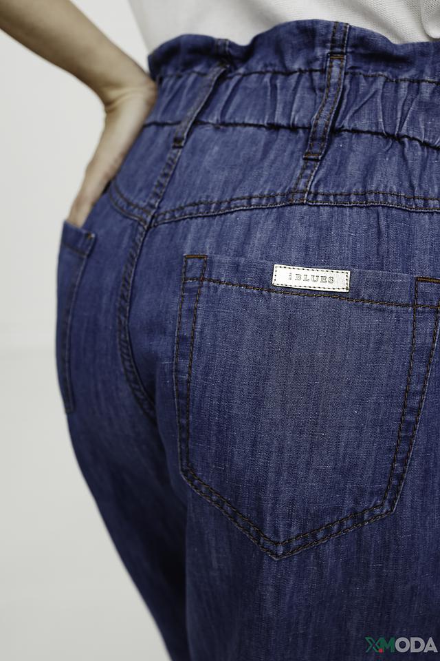 Джинсовые брюки i Blues синего цвета с высокой посадкой и утягивающим поясом. Модель выполнена из хлопка с добавлением льна, что обеспечивает комфорт и воздухопроницаемость. Идеальный выбор для создания стильного и удобного образа. Состав: хлопок 58%, лен 42%