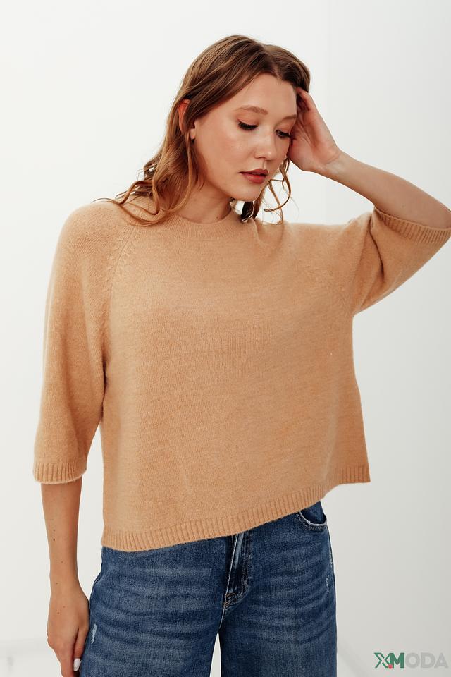 Этот женский джемпер от i Blues выполнен в нежном бежевом цвете и станет отличным дополнением к вашему гардеробу. Модель имеет свободный крой и рукава три четверти, что делает ее универсальной для различных образов.