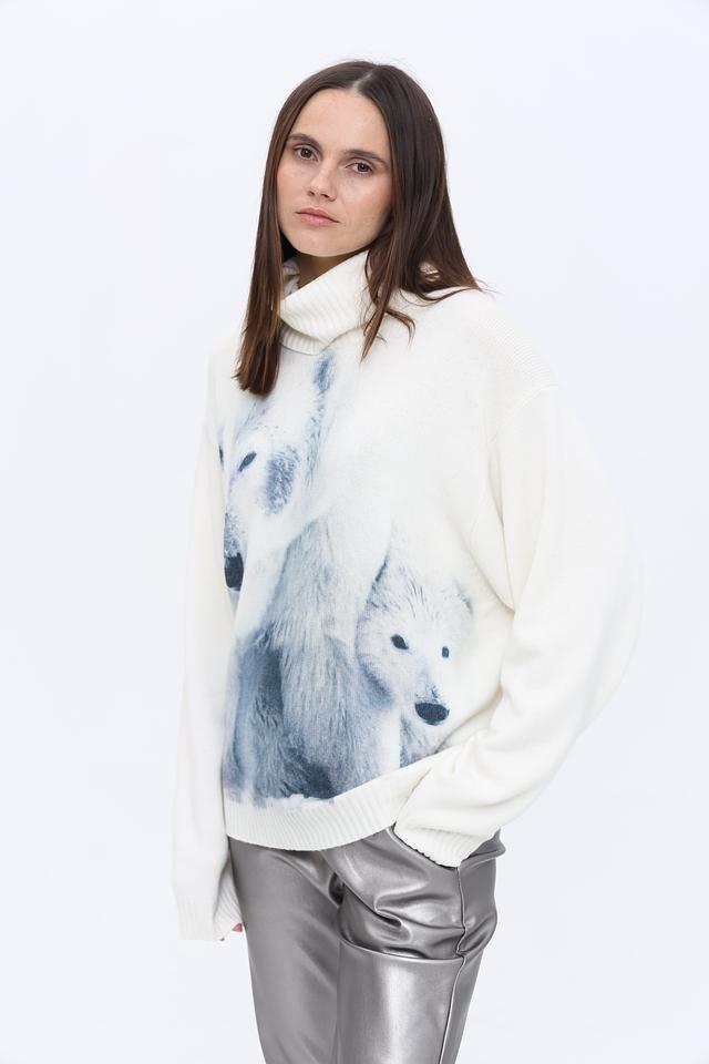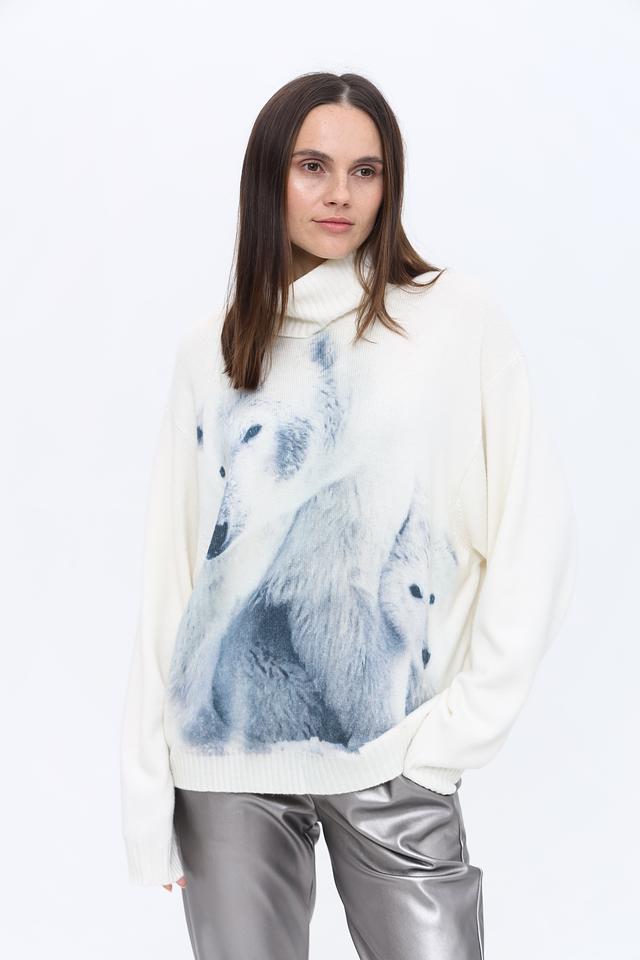 Белый джемпер Ice Play с оригинальным принтом в виде белого медведя станет ярким акцентом вашего образа. Модель выполнена из мягкого трикотажа с добавлением шерсти и кашемира для комфорта и тепла. Состав: вискоза 33%, полиамид 23%, шерсть 20%, хлопок 20%, кашемир 4%