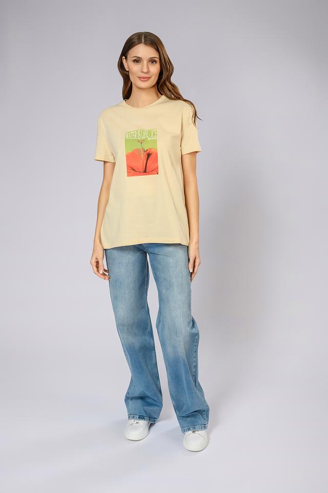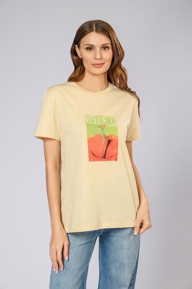 Женская футболка Ice Play светло-бежевого цвета с ярким цветочным принтом. Модель выполнена в свободном крое, что обеспечивает комфорт и удобство в повседневной носке. Стильный принт добавит образу оригинальности. Состав: хлопок 100%