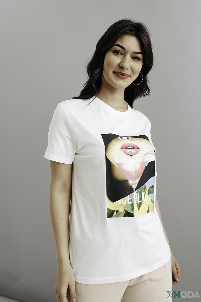 Белая футболка Ice Play с ярким принтом — стильный выбор для повседневного образа. Изготовлена из 100% хлопка, обеспечивающего комфорт и воздухопроницаемость. Состав: хлопок 100%