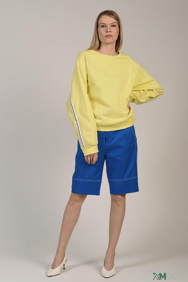 Шорты имеют классический крой с высокой посадкой и прямыми штанинами. Отличительной особенностью модели являются декоративные канты контрастного белого цвета, которые подчеркивают геометрию кроя и добавляют изюминку.