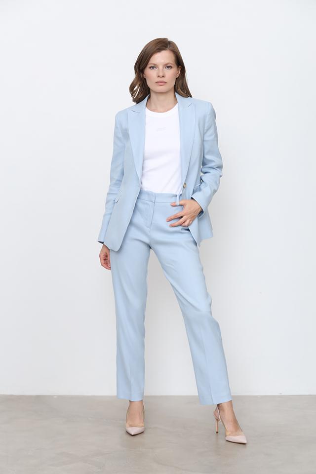 Женские брюки Icona голубого цвета – это стильное и комфортное решение для создания элегантного образа. Классический крой и лаконичный дизайн делают эти брюки универсальным элементом гардероба. Состав: лен 60%, вискоза 39%, эластан 1%