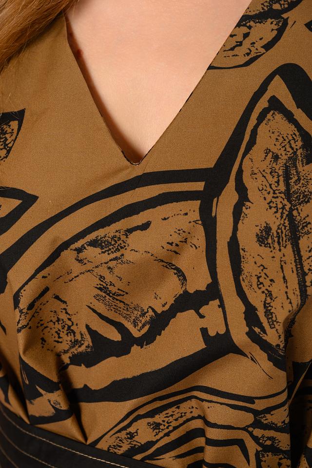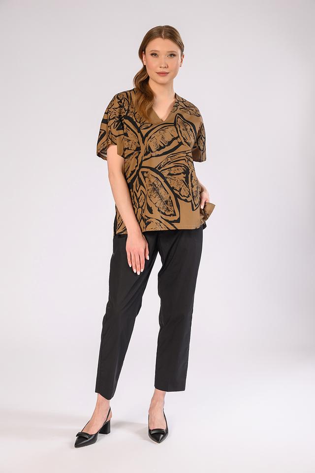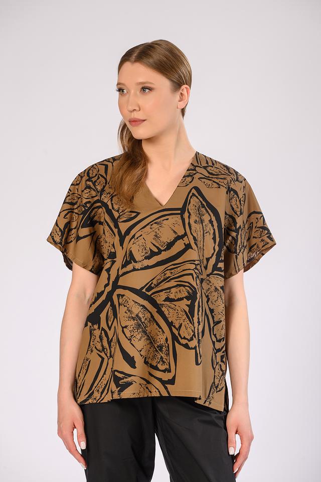 Блуза Icona коричневого цвета с оригинальным принтом в виде листьев станет стильным дополнением к вашему гардеробу. Модель выполнена из 100% хлопка, что обеспечивает комфорт в носке. Состав: хлопок 100%