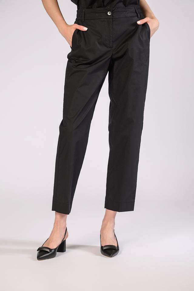 Чёрные брюки Icona из 100% хлопка — это стильное и комфортное решение для создания повседневных образов. Прямой крой и эластичный пояс обеспечивают удобную посадку по фигуре. Состав: хлопок 100%