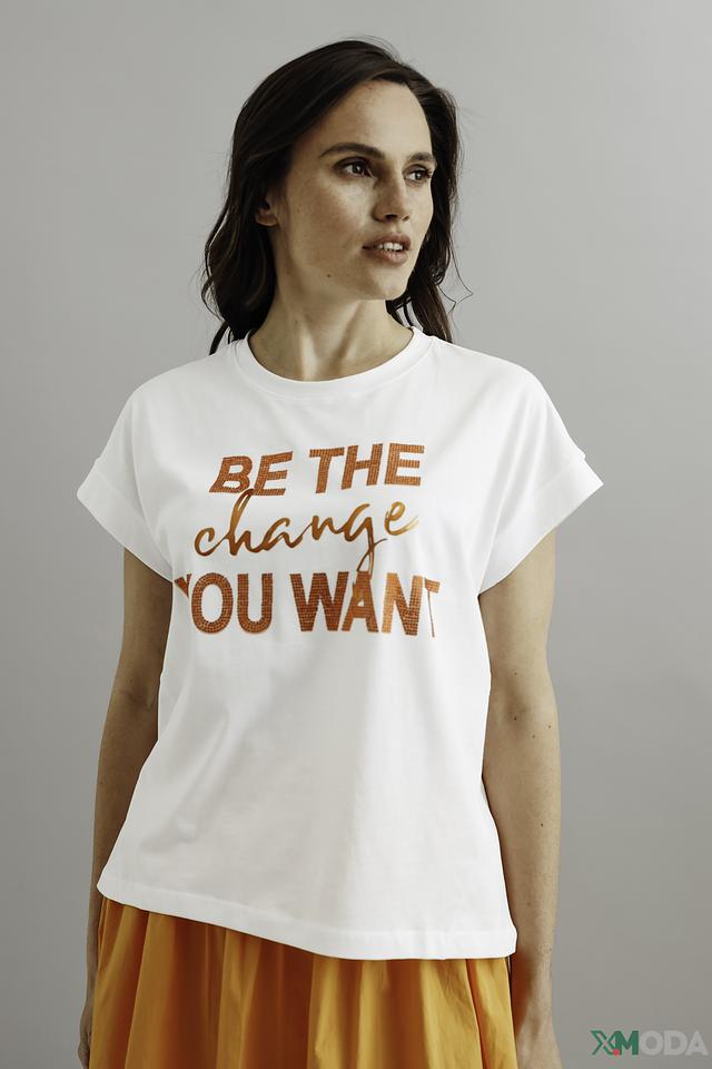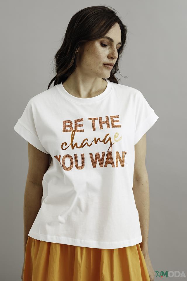 Белая футболка Icona с ярким принтом "BE THE change YOU WANT" станет стильным дополнением к вашему гардеробу. Модель из 100% хлопка обеспечивает комфорт и удобство в носке. Состав: хлопок 100%