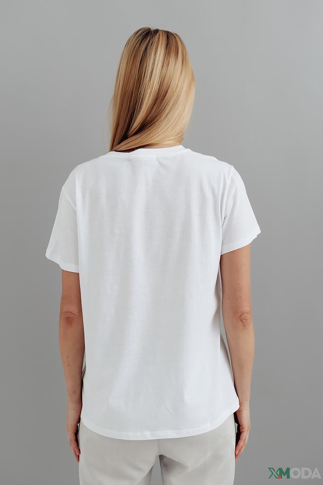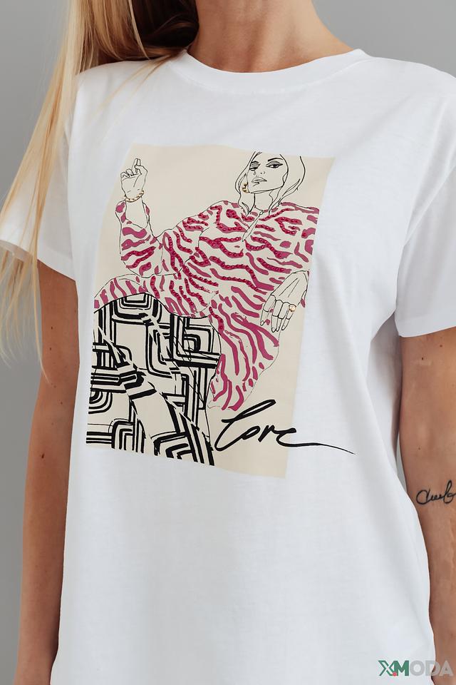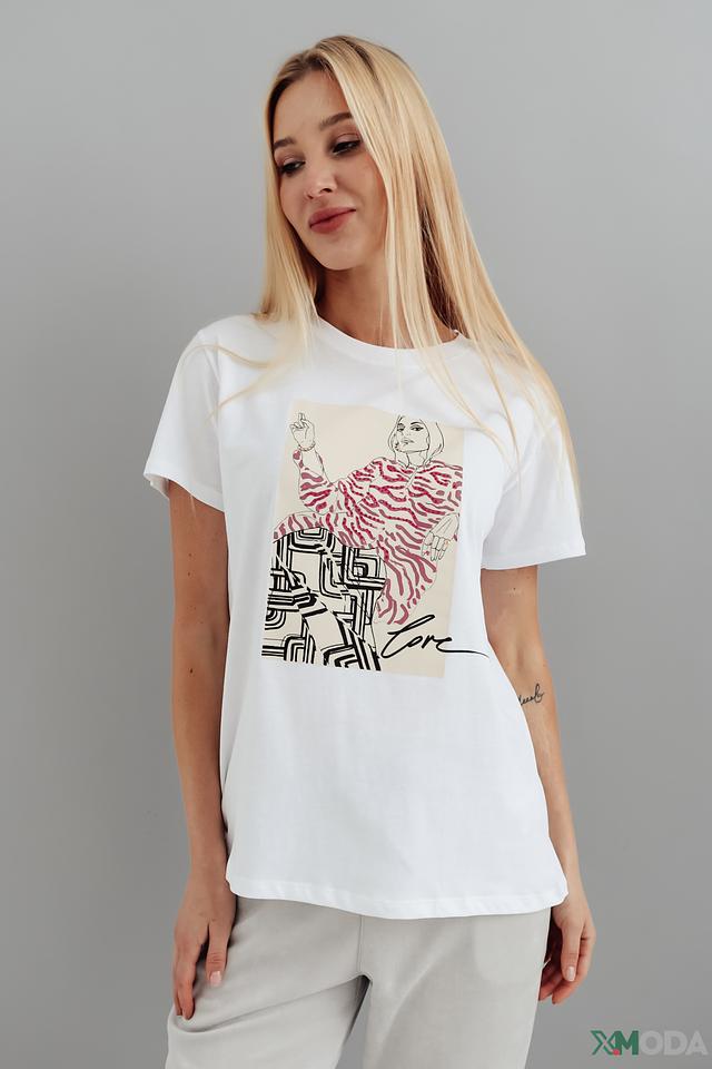 Женская футболка Icona белого цвета с оригинальным графичным принтом. Модель выполнена из 100% хлопка, обеспечивая комфорт и воздухопроницаемость. Стильный и современный выбор для повседневного образа. Состав: хлопок 100%