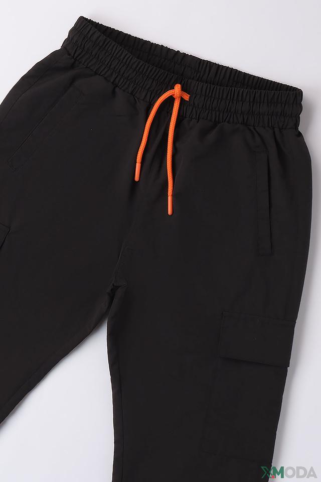 Брюки имеют удобный эластичный пояс с регулирующим шнурком оранжевого цвета, обеспечивающим надежную посадку. Наличие функциональных карманов добавляет практичности. Крой брюк – свободный, не сковывающий движений, что идеально подходит для активных игр и повседневной носки.