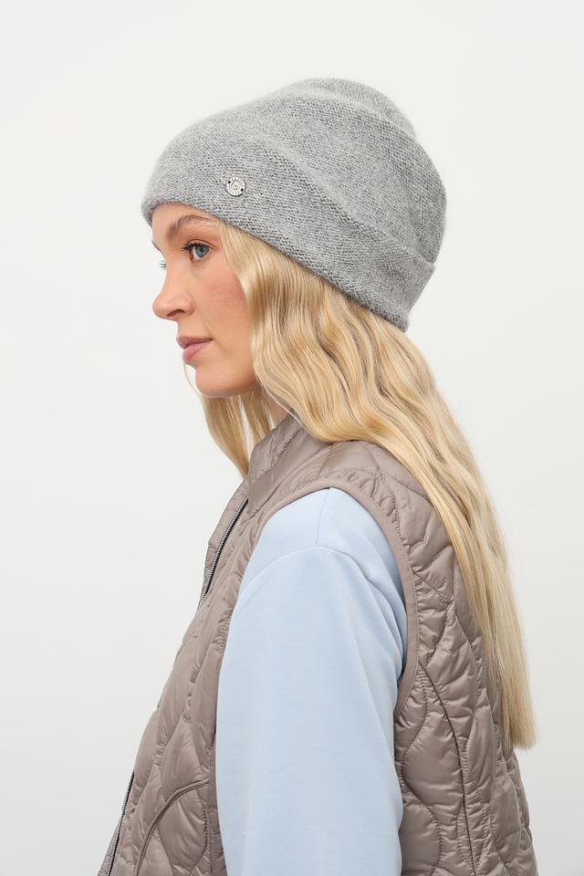 Шапка дополнена небольшим декоративным элементом, придающим ей изысканность.