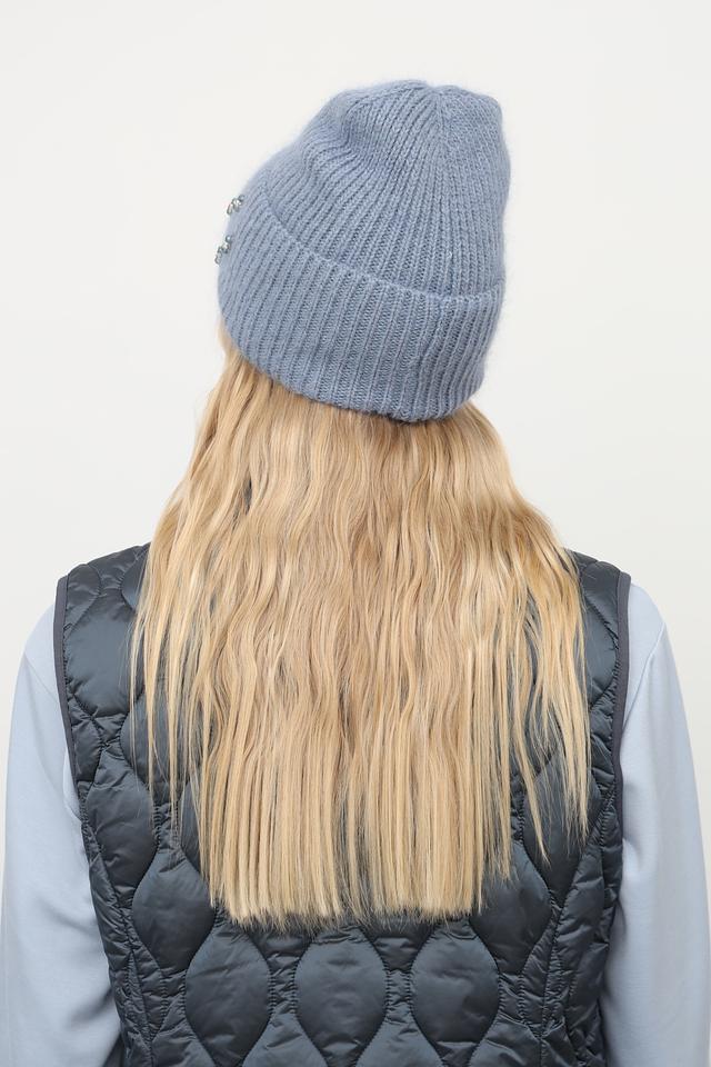 Голубая вязаная шапка Julia Florenzi с оригинальным декором из бусин. Изготовлена из мягкой пряжи с добавлением ангоры и вискозы. Стильный и уютный аксессуар для прохладной погоды. Состав: ангора 30%, вискоза 30%, нейлон 30%, шерсть 10%