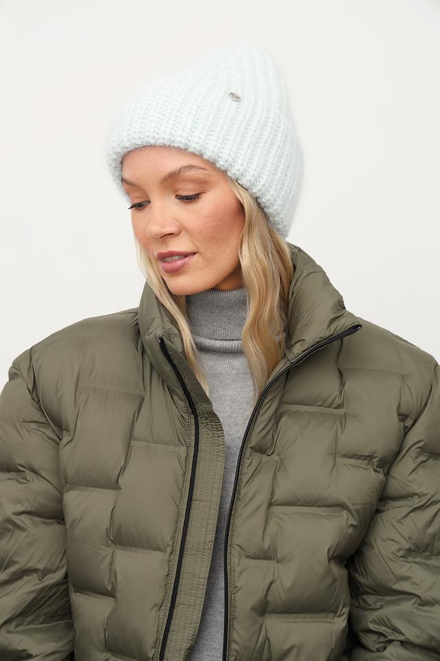 Шапка декорирована небольшим металлическим элементом, добавляющим изысканности. Классический белый цвет легко сочетается с любой одеждой. Мягкий, эластичный манжет обеспечивает плотное прилегание и дополнительную защиту от ветра.