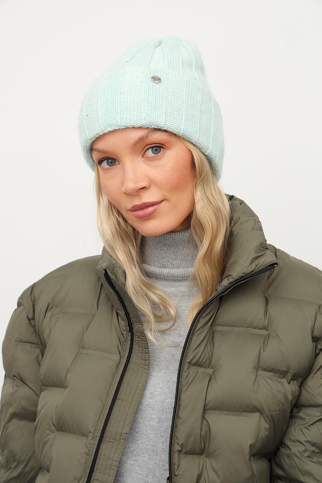 Модель выполнена в приятном бирюзовом цвете, который легко сочетается с различной верхней одеждой. Шапка изготовлена из сочетания материалов: 10% шерсти, 40% нейлона, 30% вискозы и 20% ангоры. Это обеспечивает тепло, мягкость и комфорт в носке.