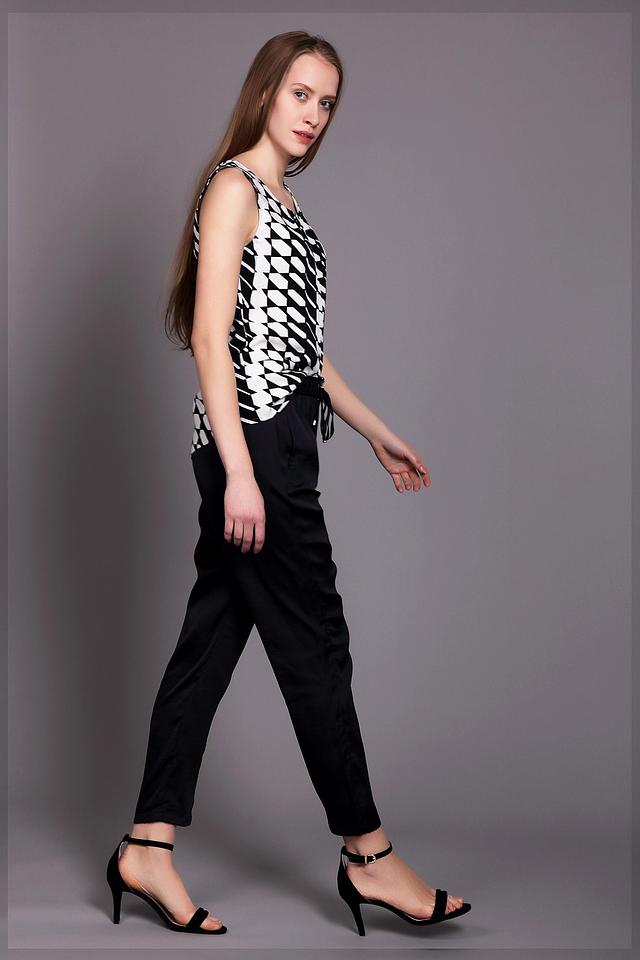 Эти брюки от Just Valeri станут незаменимой частью вашего гардероба. Классический чёрный цвет делает их универсальными и подходящими для создания различных образов.