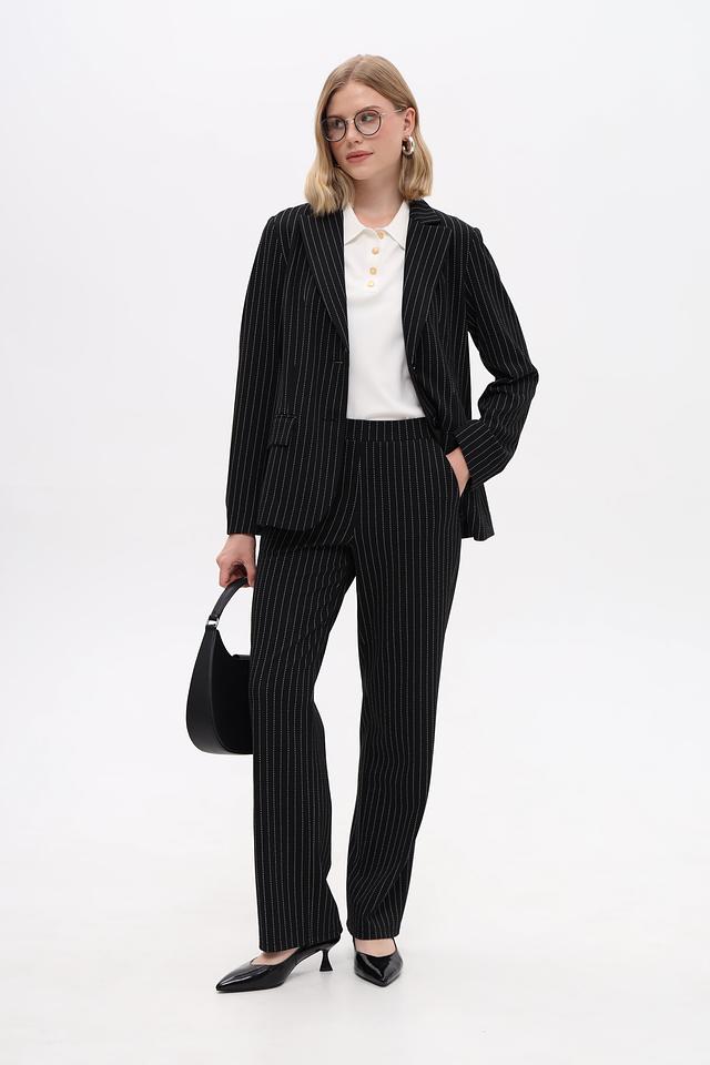 Представляем элегантные брюки от бренда Just Valeri, выполненные в строгом дизайне с вертикальной полоской. Эта модель станет отличным дополнением к вашему гардеробу, позволяя создавать как деловые, так и повседневные образы.
