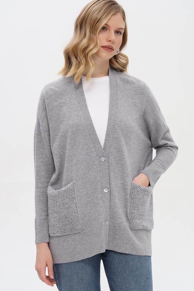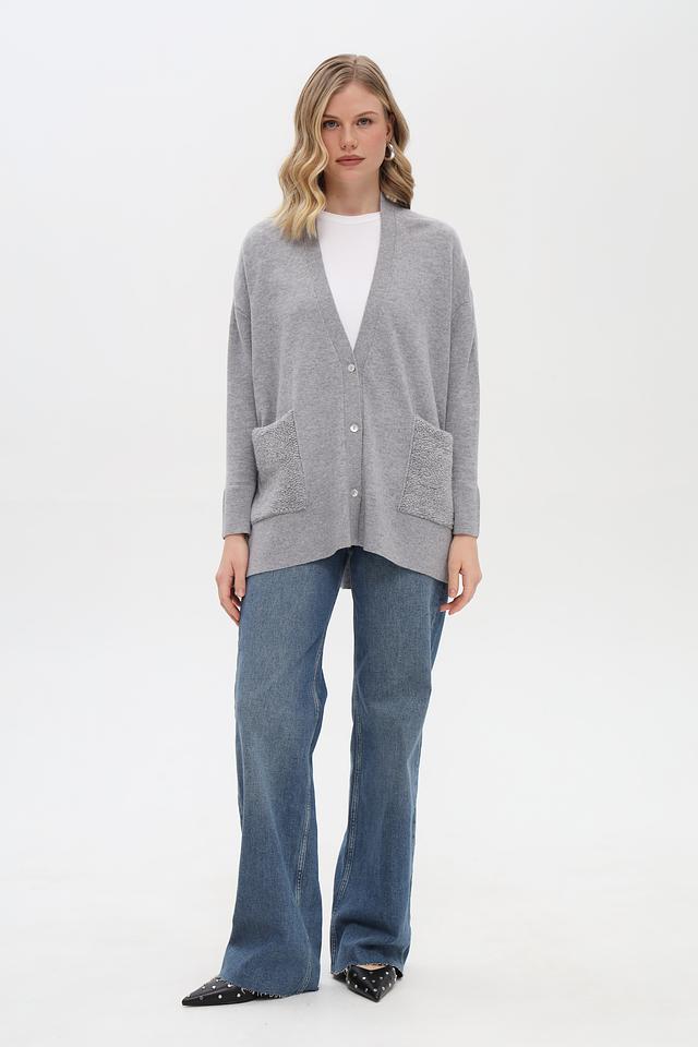 Серый жакет от Just Valeri из 100% кашемира — это воплощение комфорта и элегантности. Модель кардиган с V-образным вырезом и накладными карманами станет отличным дополнением к вашему гардеробу. Состав: кашемир 100%